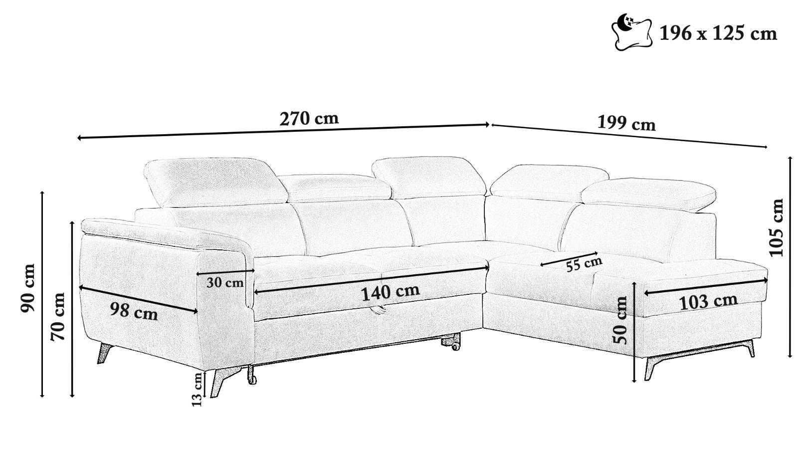 Ce canapé d’angle 4 à 5 places est conçu pour offrir un confort optimal tout en répondant aux besoins du quotidien. Convertible en lit, il permet d’accueillir facilement vos invités, tandis que son coffre de rangement intégré vous aide à garder un intérieur bien organisé.