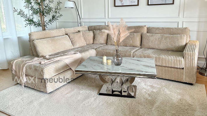 Découvrez le modèle Lyna alliez style et confort 6-7 places. Sa méridienne spacieuse vous invite à la détente au cœur de votre salon. Ses coussins déhoussables vous facilite l’entretient avec un tissus imperméable et facile d’entretient.