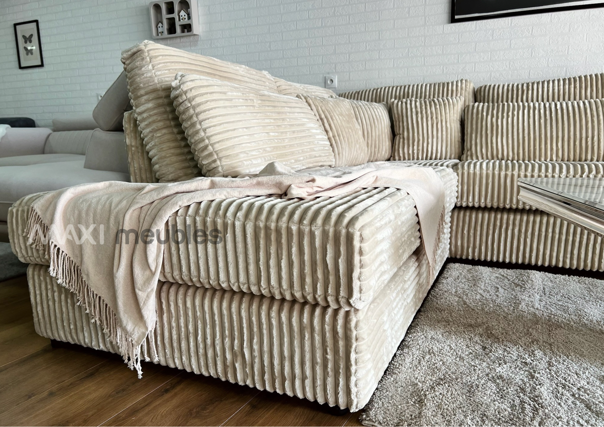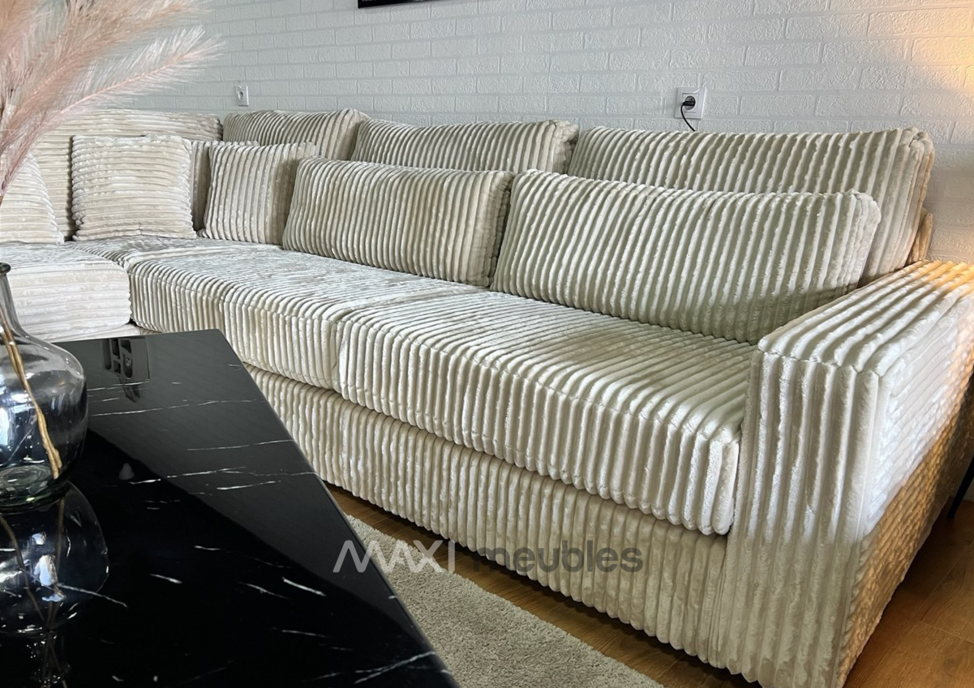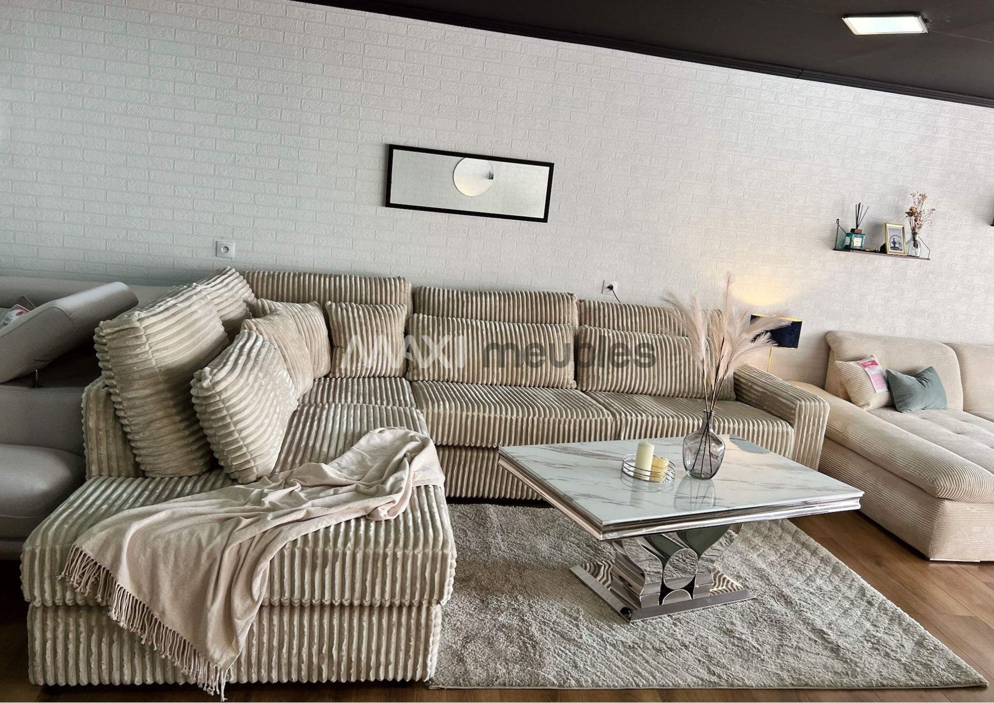 Découvrez le modèle Lyna alliez style et confort 6-7 places. Sa méridienne spacieuse vous invite à la détente au cœur de votre salon. Ses coussins déhoussables vous facilite l’entretient avec un tissus imperméable et facile d’entretient.