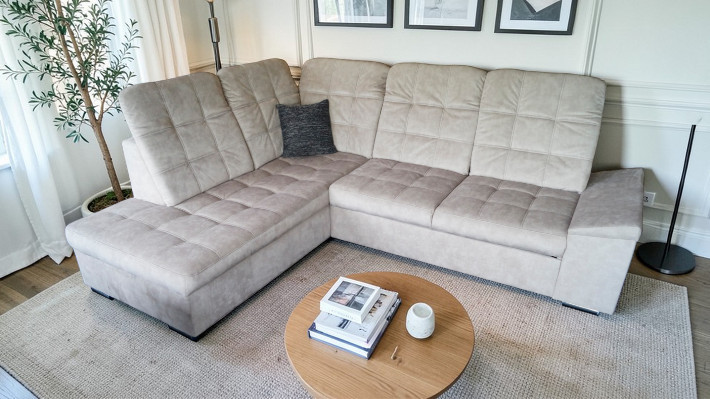 Le canapé Nicole allie fonctionnalité et confort au plus haut niveau. Grâce à ses deux grands espaces de rangement, il offre suffisamment de place pour les coussins, les plaids et autres accessoires du quotidien. En quelques gestes simples, il se transforme en un lit confortable – idéal pour accueillir des invités à l’improviste ou profiter de soirées cinéma cosy.