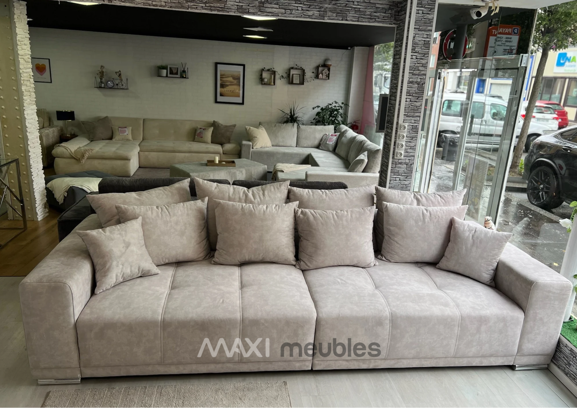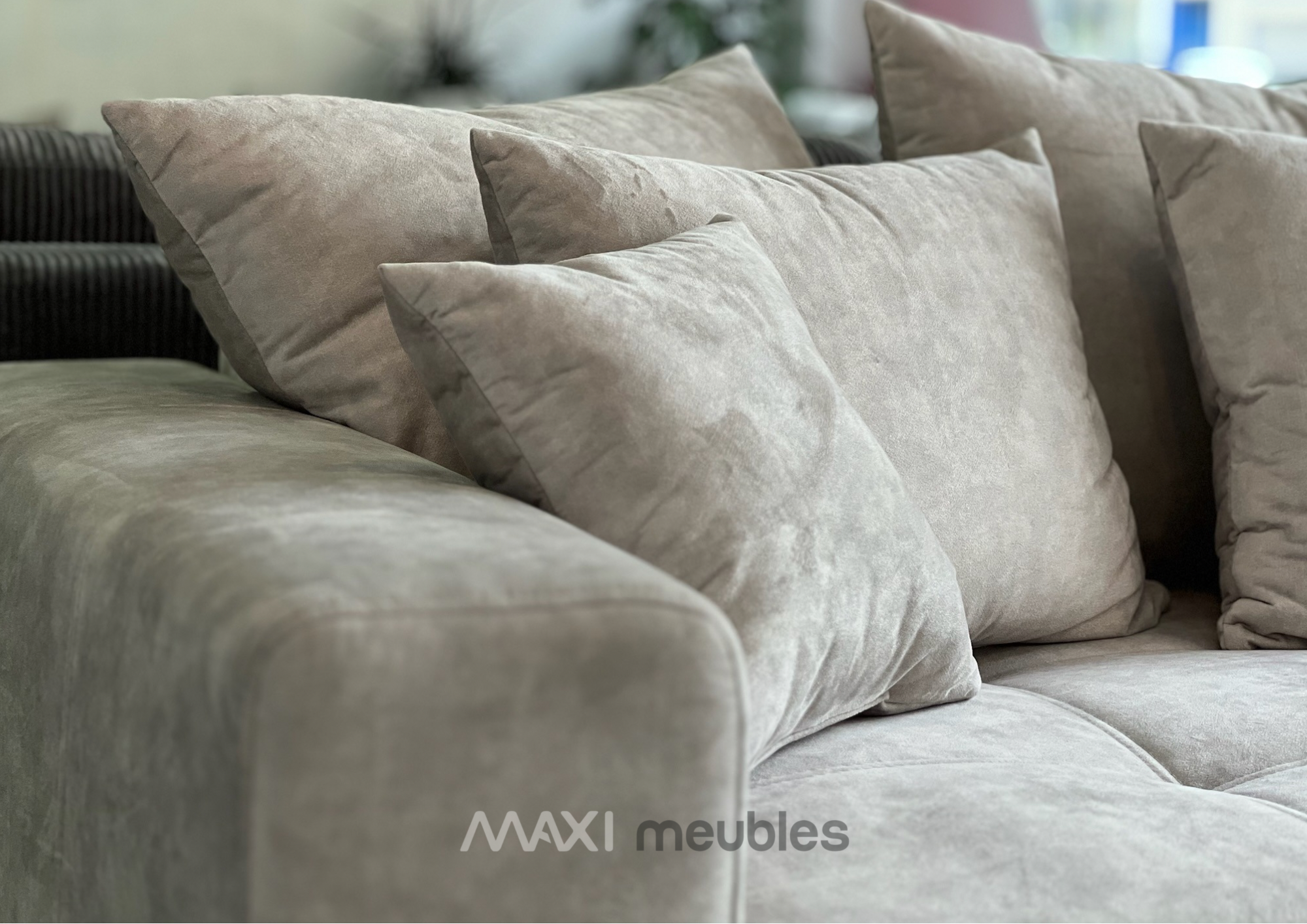 Découvrez le modèle Lyna alliez style et confort 6-7 places. mesurant 315-240cm sa méridienne spacieuse vous invite à la détente au cœur de votre salon. Ses coussins déhoussables vous facilite l’entretient avec un tissus imperméable et facile d’entretient.